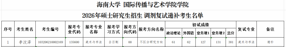2026年澳洲幸运8(中国)官方网站 硕士研究生招生调剂复试递补考生名单