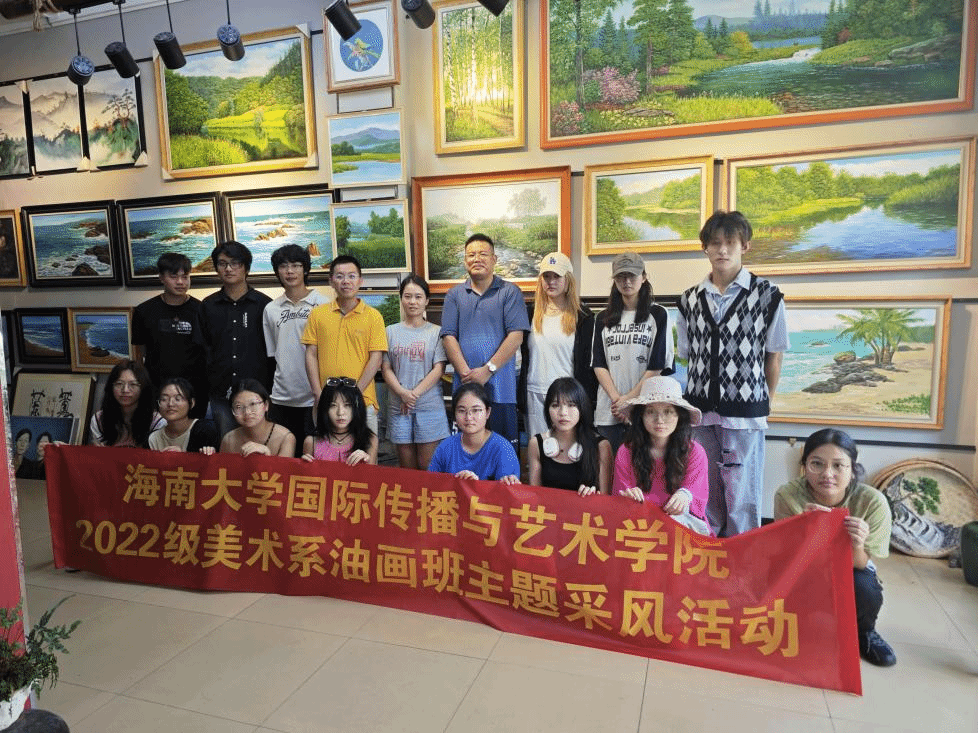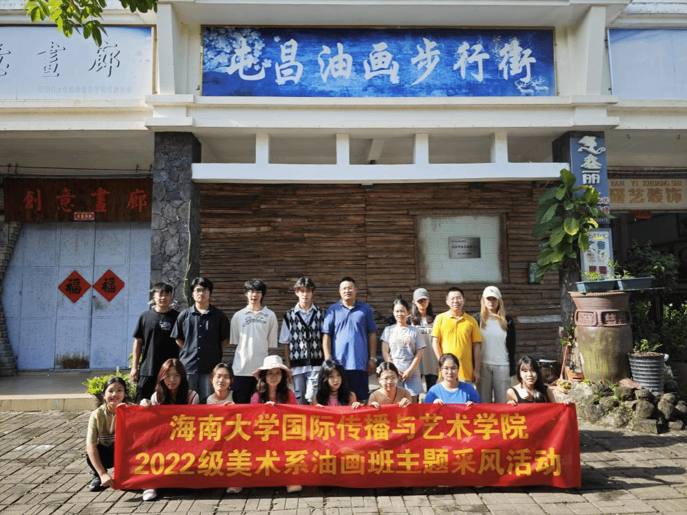 美术系主任元志东老师带领2022级美术系油画班的同学们,赴屯昌、五指山、保亭、澄迈开启了为期4天的艺术实践课活动。此次调研访学,围绕海南地域特色,对“屯昌油画一条街”开展了实践调研,并对“黎族文化”“热带雨林文化”等进行了深入学习。此次学习拓展了学生们的艺术视野,为学生们的主题性美术创作提供了鲜活的艺术体验。