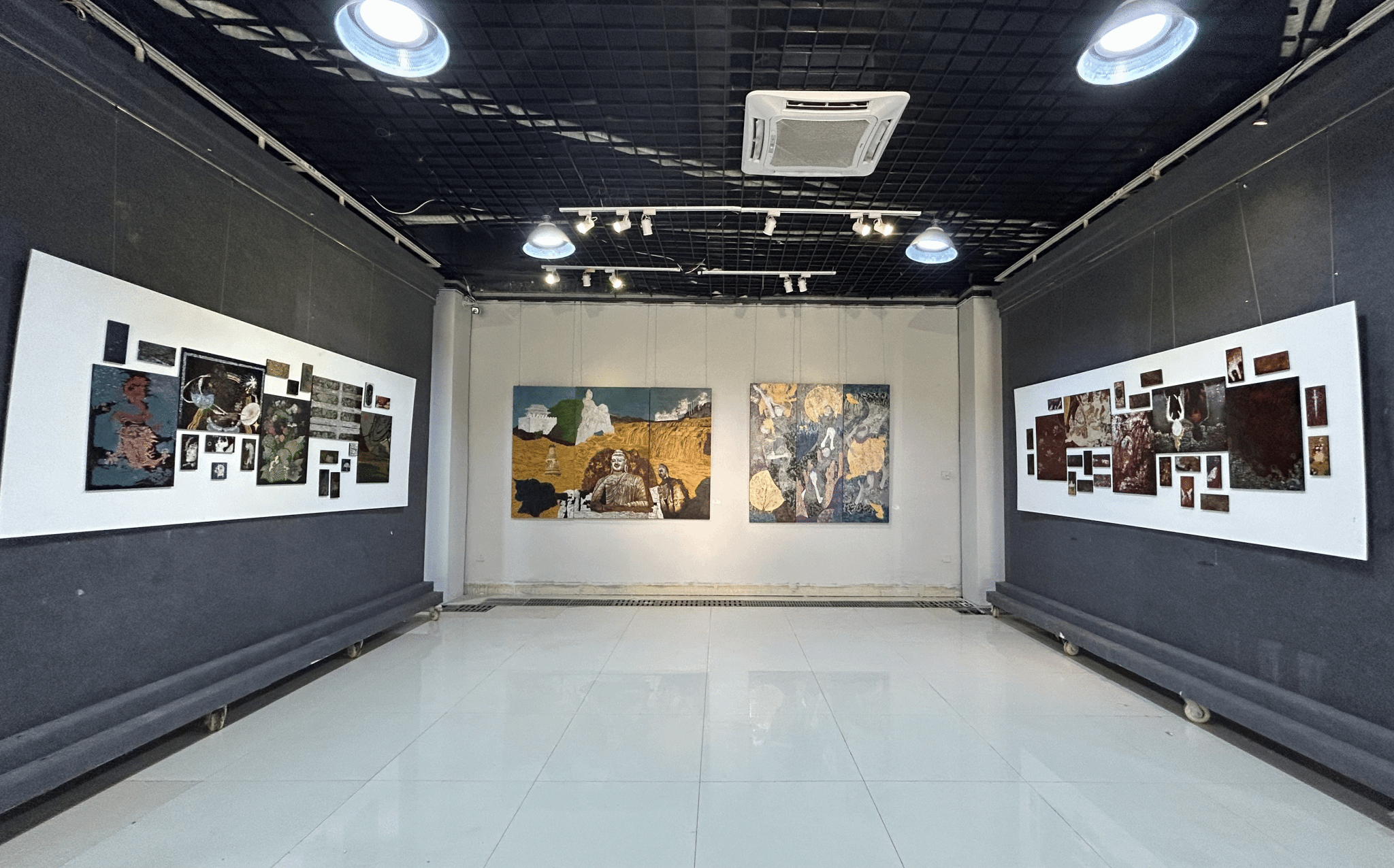 主办、美术系综合材料绘画专业承办的“视觉文化与材料审美——综合材料绘画教学成果展”在海南大学美术馆开幕。