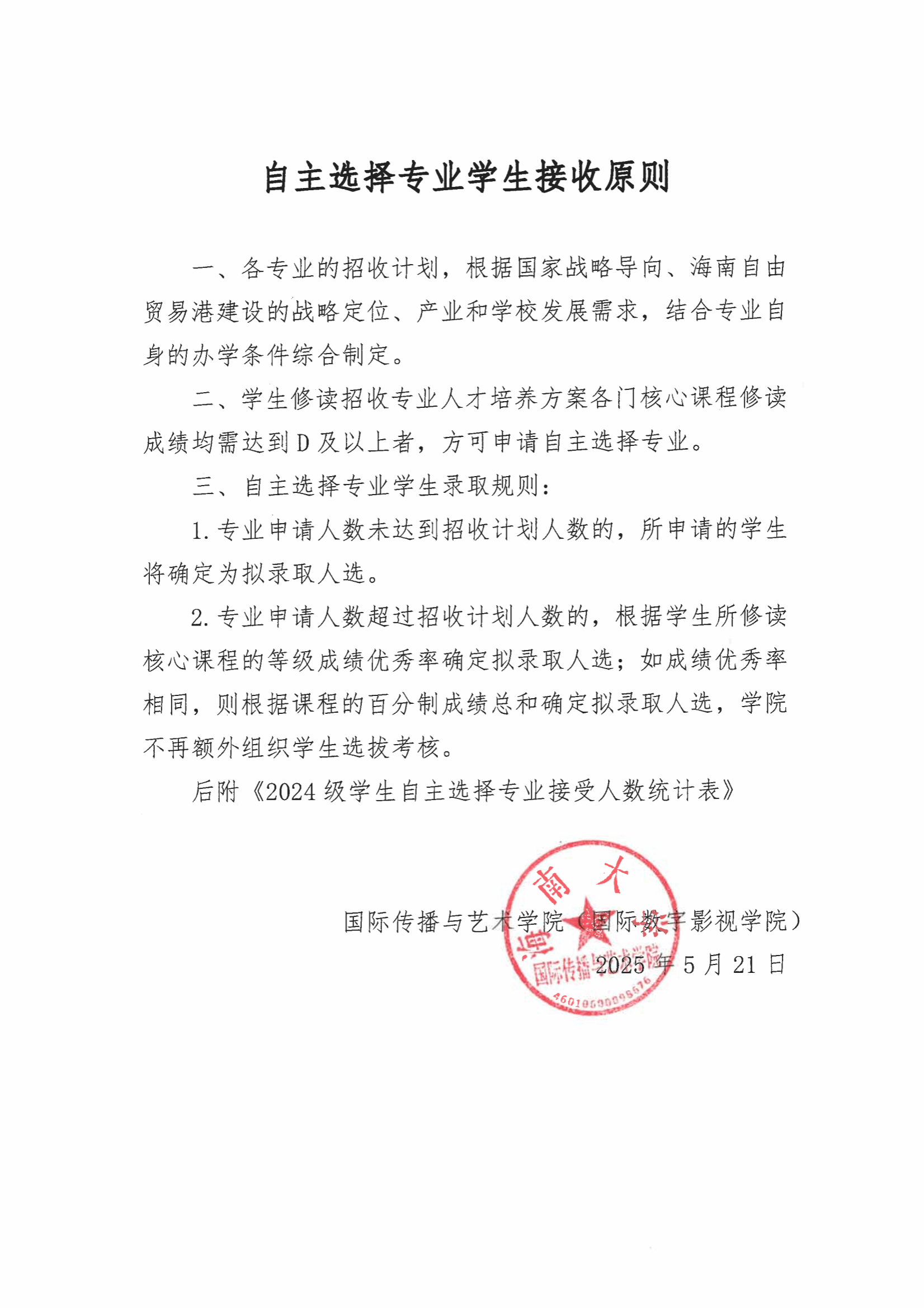 自主选择专业学生接收原则