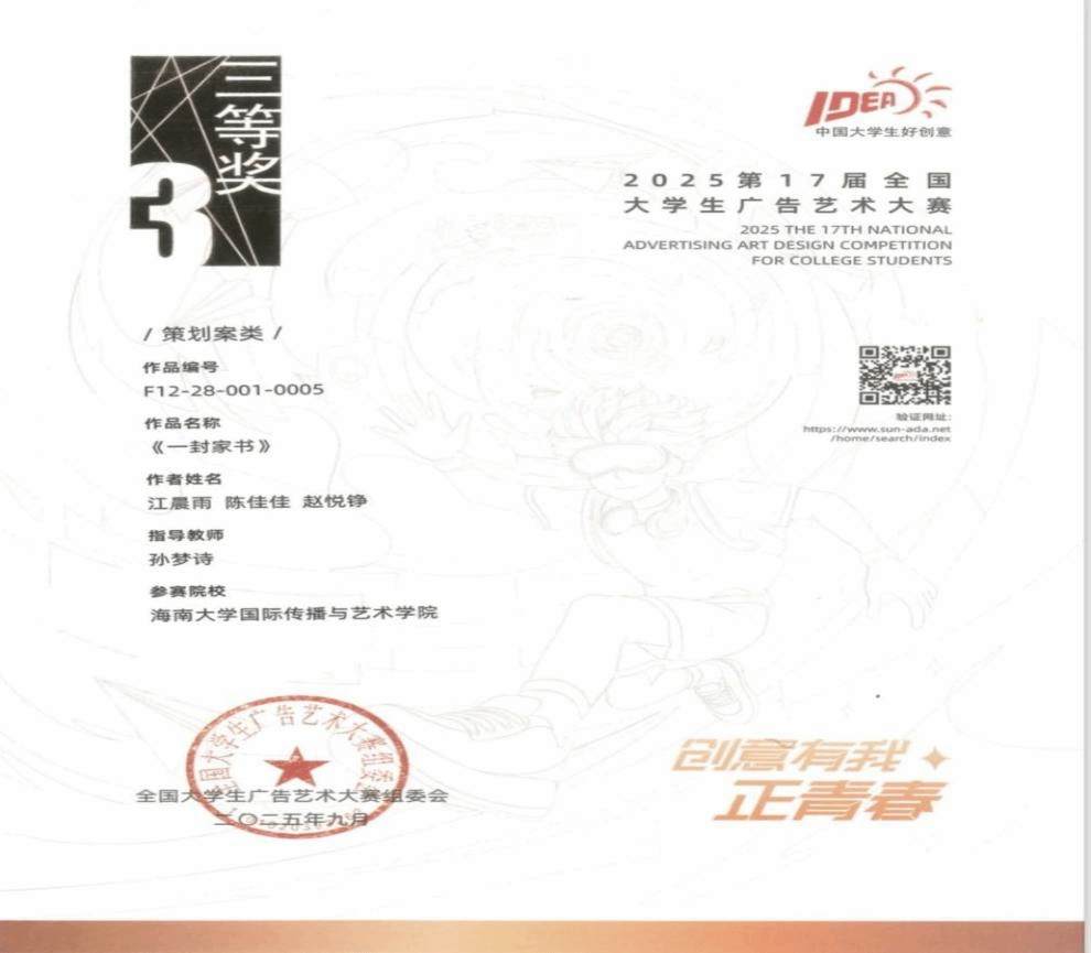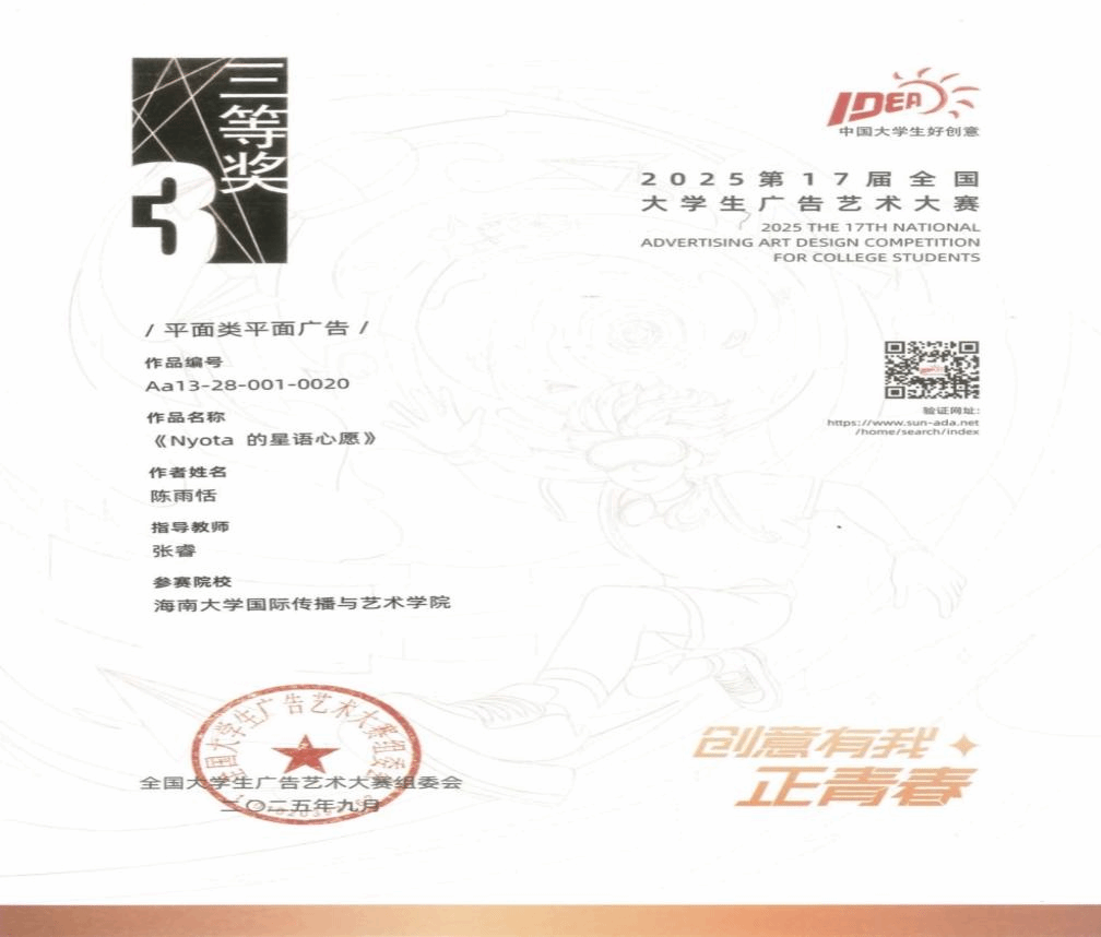 2025年12月6日至7日,第17届全国大学生广告艺术大赛学科竞赛成果展示盛典暨全国大学生广告艺术大赛华彩20周年颁奖典礼在北京政协礼堂隆重举行。本届大赛吸引全国176万名学子参与,收到创意作品58万余组,澳洲幸运8