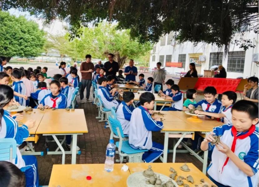 2022级雕塑班12位学生开启为期4天的艺术实践课。首日走进琼中县黎母山镇新进中学,开展“助力乡村教育,护苗快乐成长”活动,为新进中学40名学生普及雕塑知识。