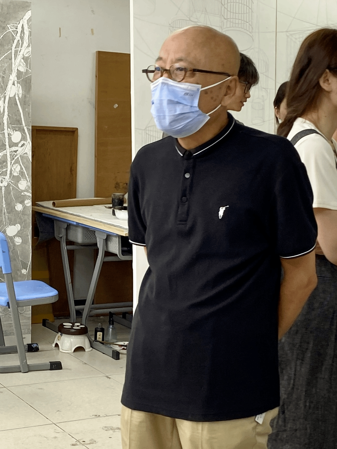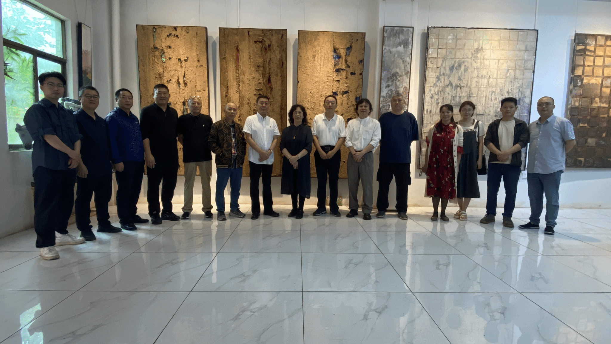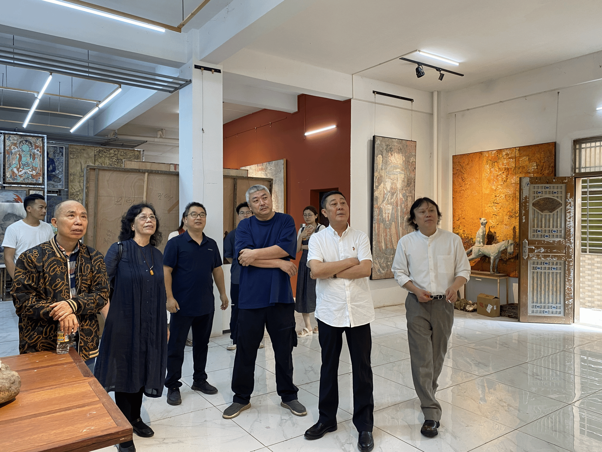 教授林明俊,海南省美协副秘书长、国画艺委会副主任兼秘书长梁增权陪同调研。