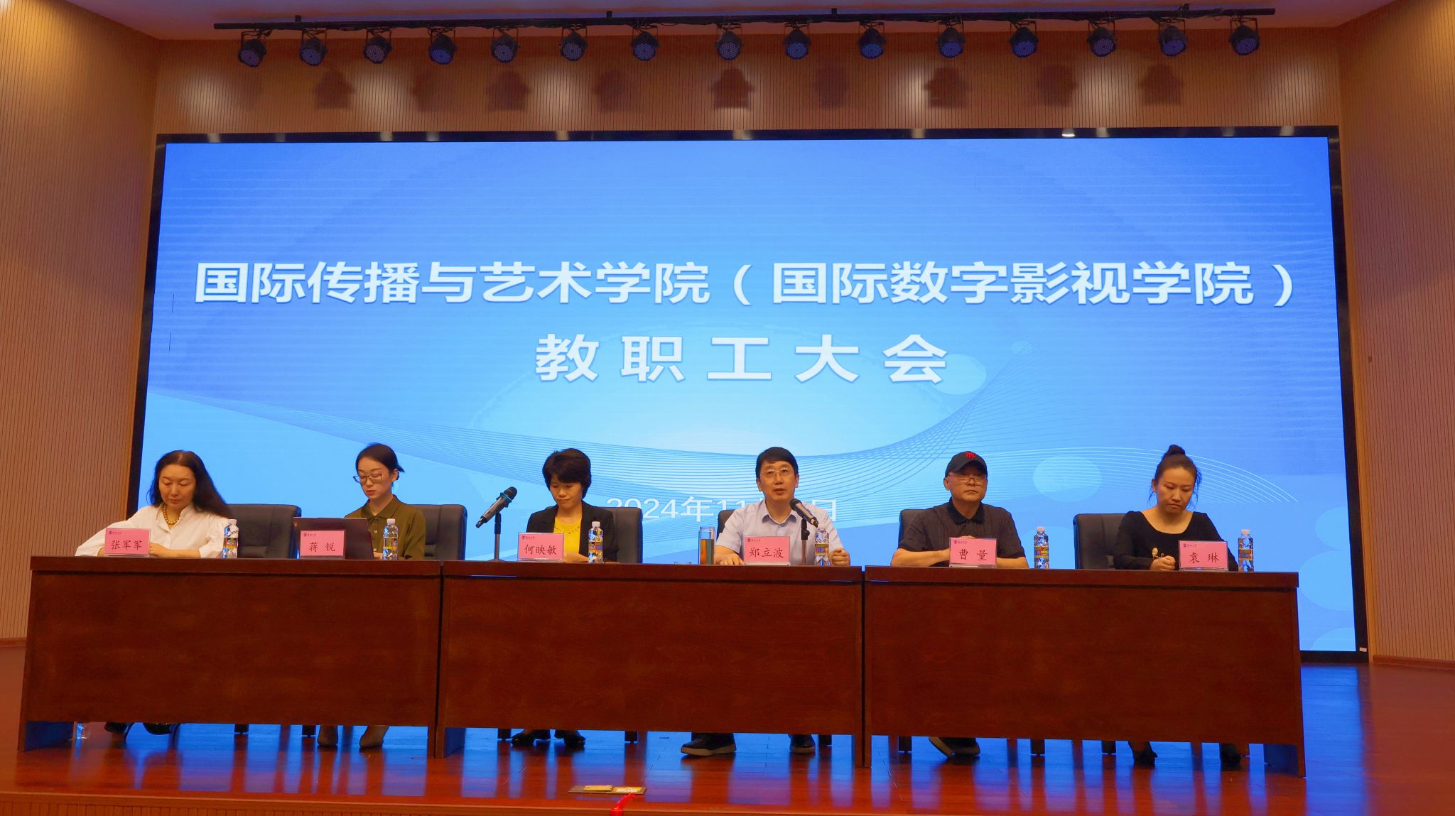 (国际数字影视学院)在海南大学田家炳副楼报告厅召开2024年全体教职工大会暨深化完全学分制改革宣讲会。学院领导班子及全体教职工参会,副院长曹量主持会议。