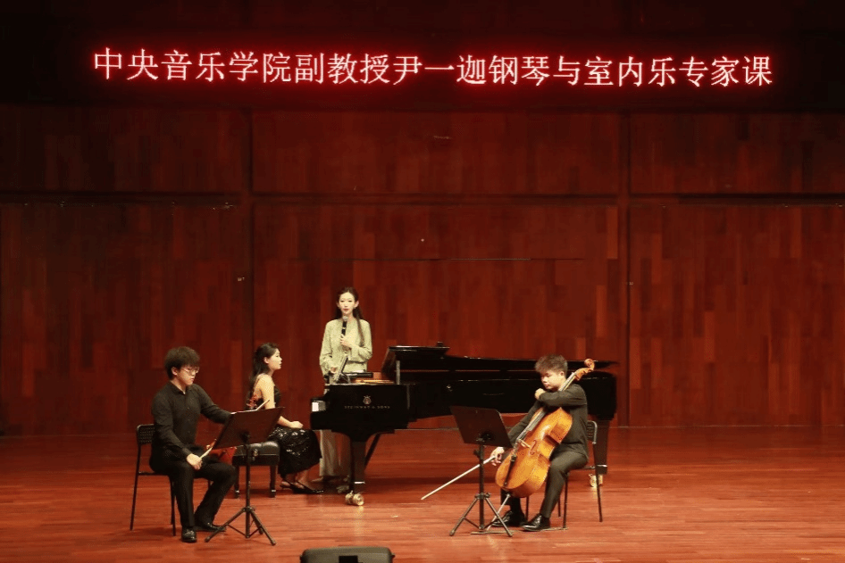 专家课现场,尹一迦结合多位同学的现场演奏,从技巧处理、节奏把握与情感表达等维度进行了系统指导。她强调“演奏是技巧与文化情感的融合”,通过逐段解析与专业示范,帮助学生突破演奏难点。